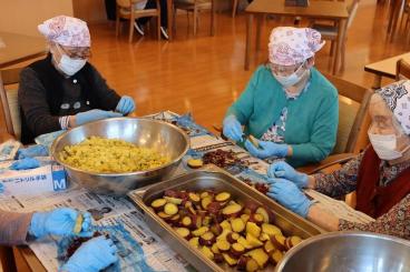 屋上の菜園で栽培されたサツマイモを沢山頂戴したので、本日のおやつはお客様に手伝っていただきながらスイートポテトを作りました。