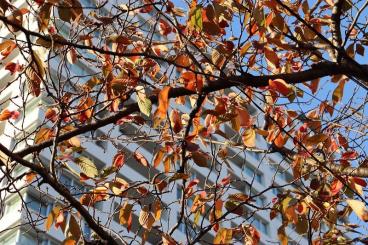 そして、そろそろ冬の訪れを意識する時期になりましたが、食堂の窓から見えるソメイヨシノの木は最近ようやく色づき始めたばかり。