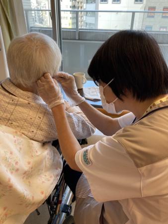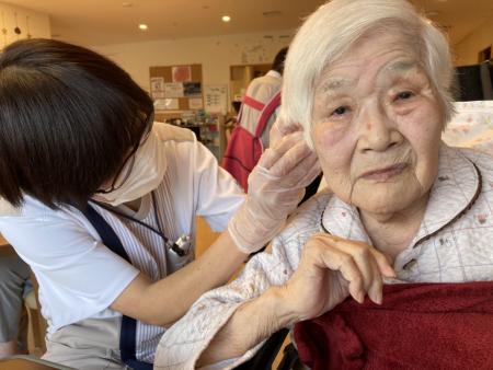 看護師は入浴後に、爪切りや耳掃除、傷の処置などを行っています。