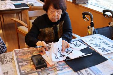 近年、年始めには色紙に干支を書いていただき、お部屋に飾っていただいています。
