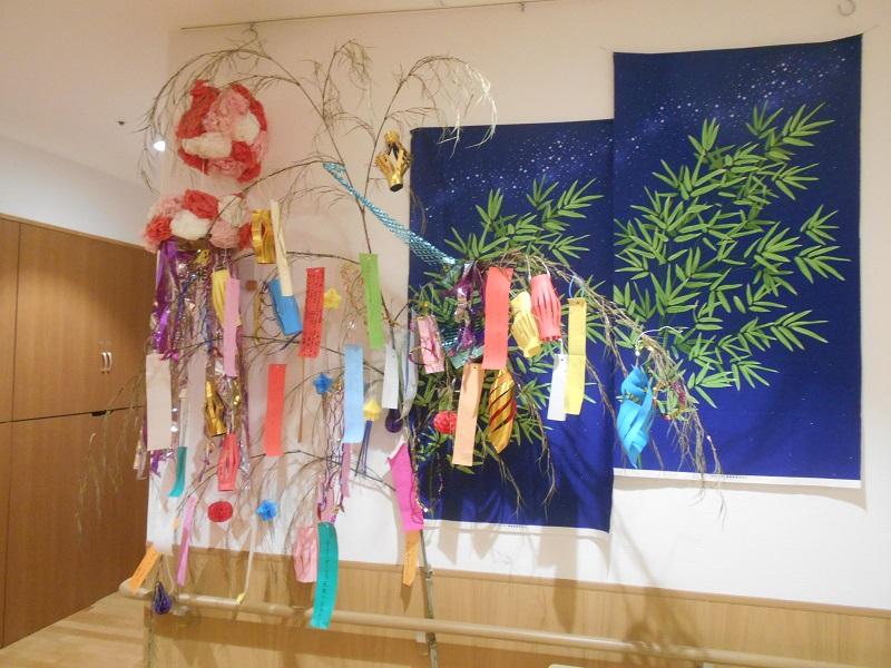 お願い事を書いた短冊を飾らせていただきましたよ~煌びやかな飾りも、お客様に作っていただきました!