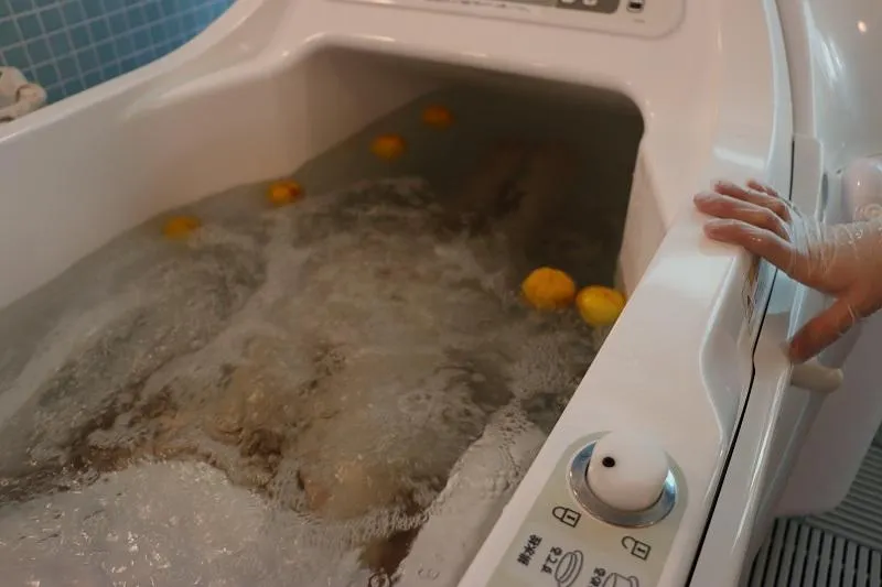 皆さまに、柚子を浮かべたお風呂に入っていただきました。