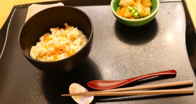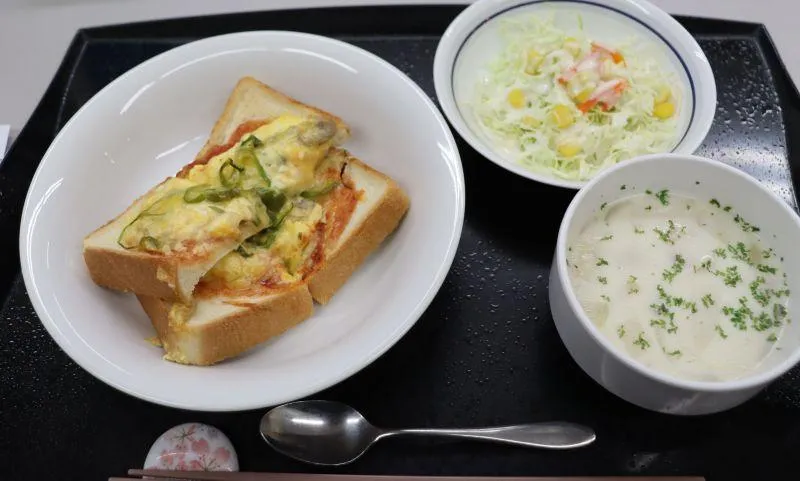 朝食は、ピザトーストと海鮮粥の日がありました。