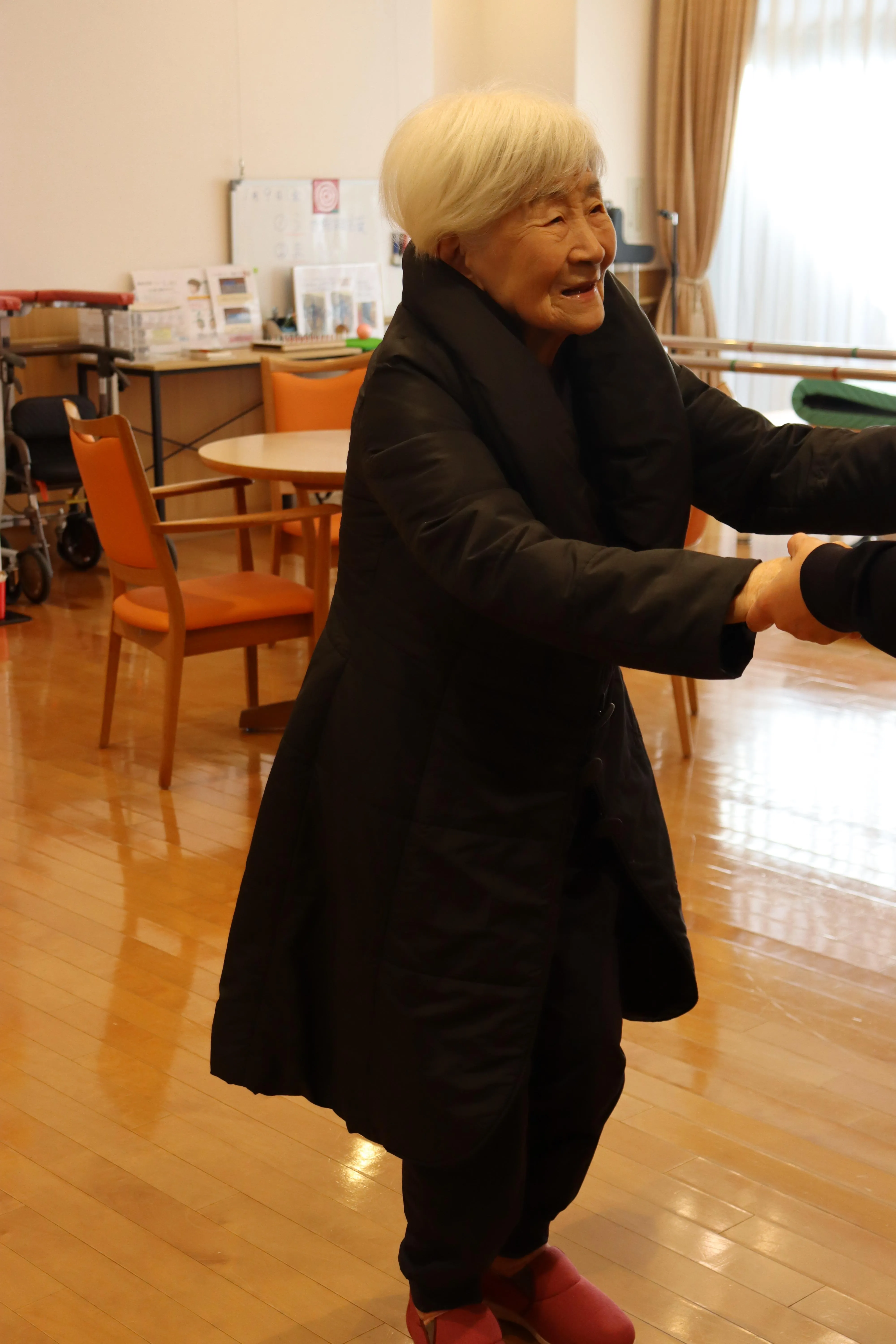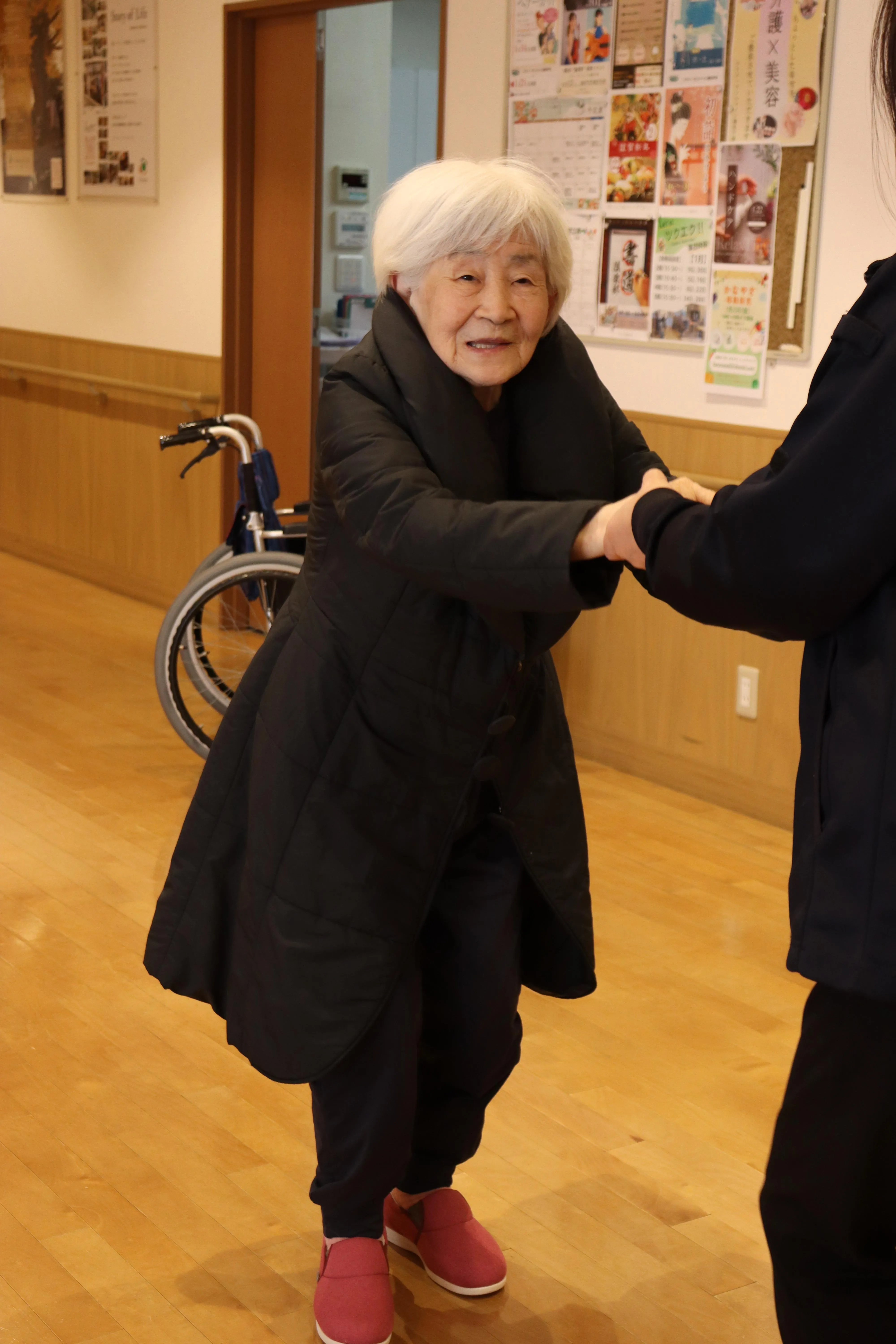 初詣に出かける前に、施設内で歩く機能訓練を行いました。