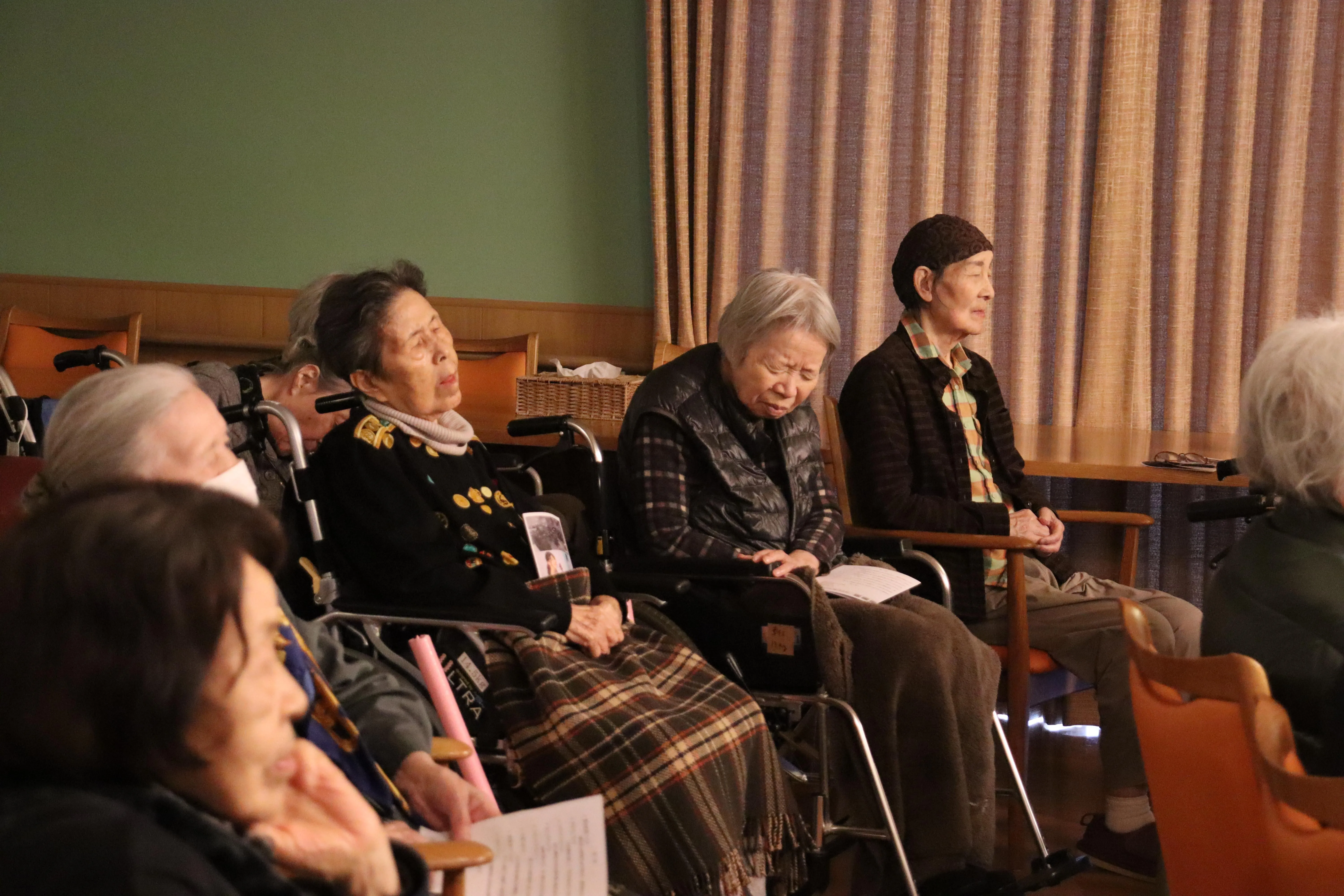 やさしい音色や懐かしい楽曲に触れることで、認知症のあるお客様も安心した表情で参加されています。