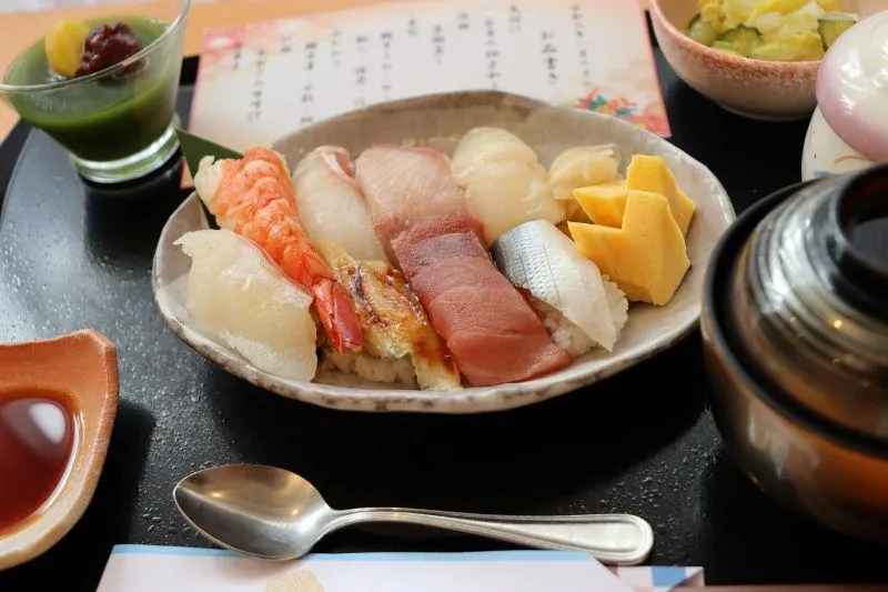 握りずし(鮪、鯛、はまち、えび、鰤、小肌、帆立、穴子、玉子)