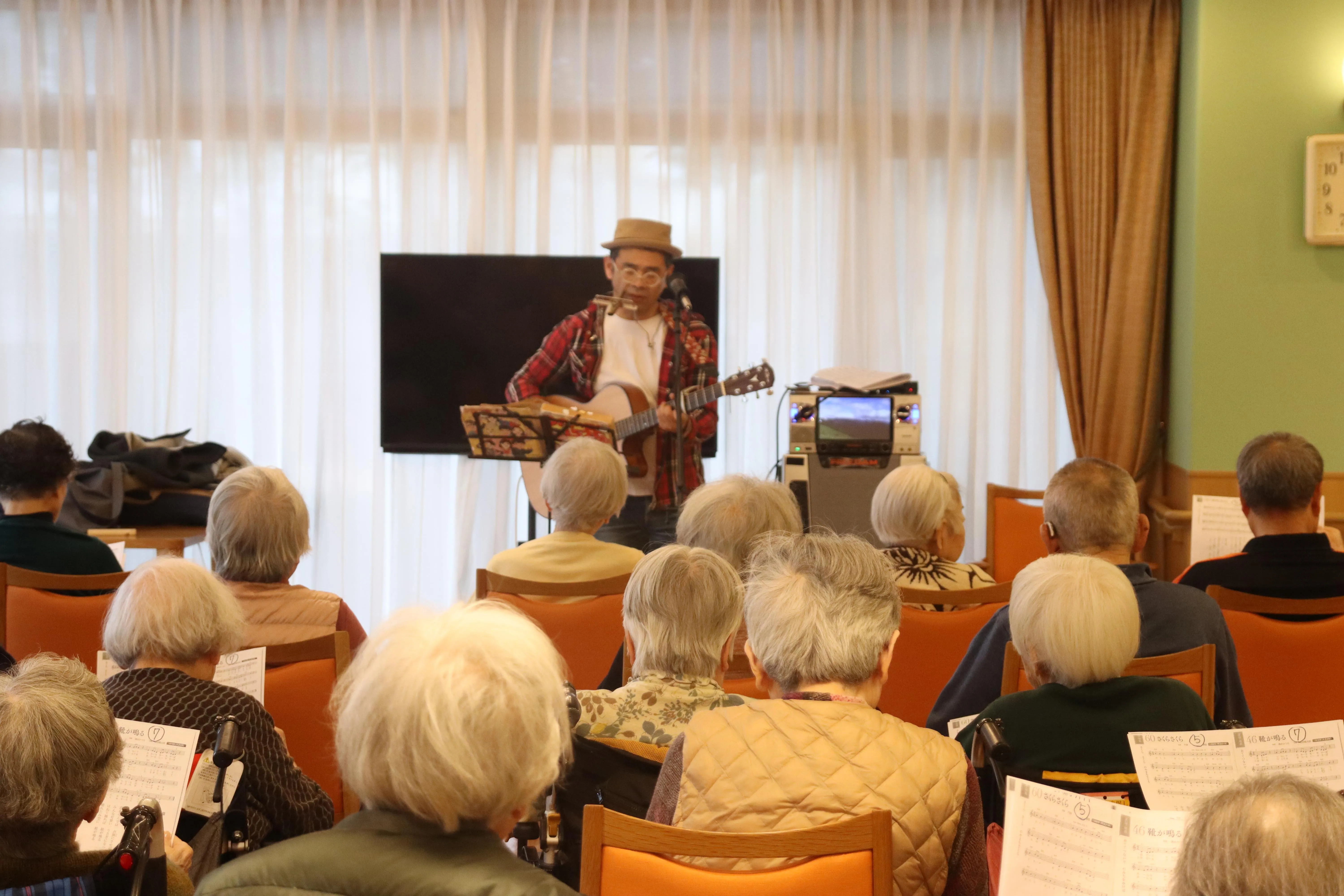 食堂に懐かしい歌声が響き、笑顔いっぱいのひとときとなりました。