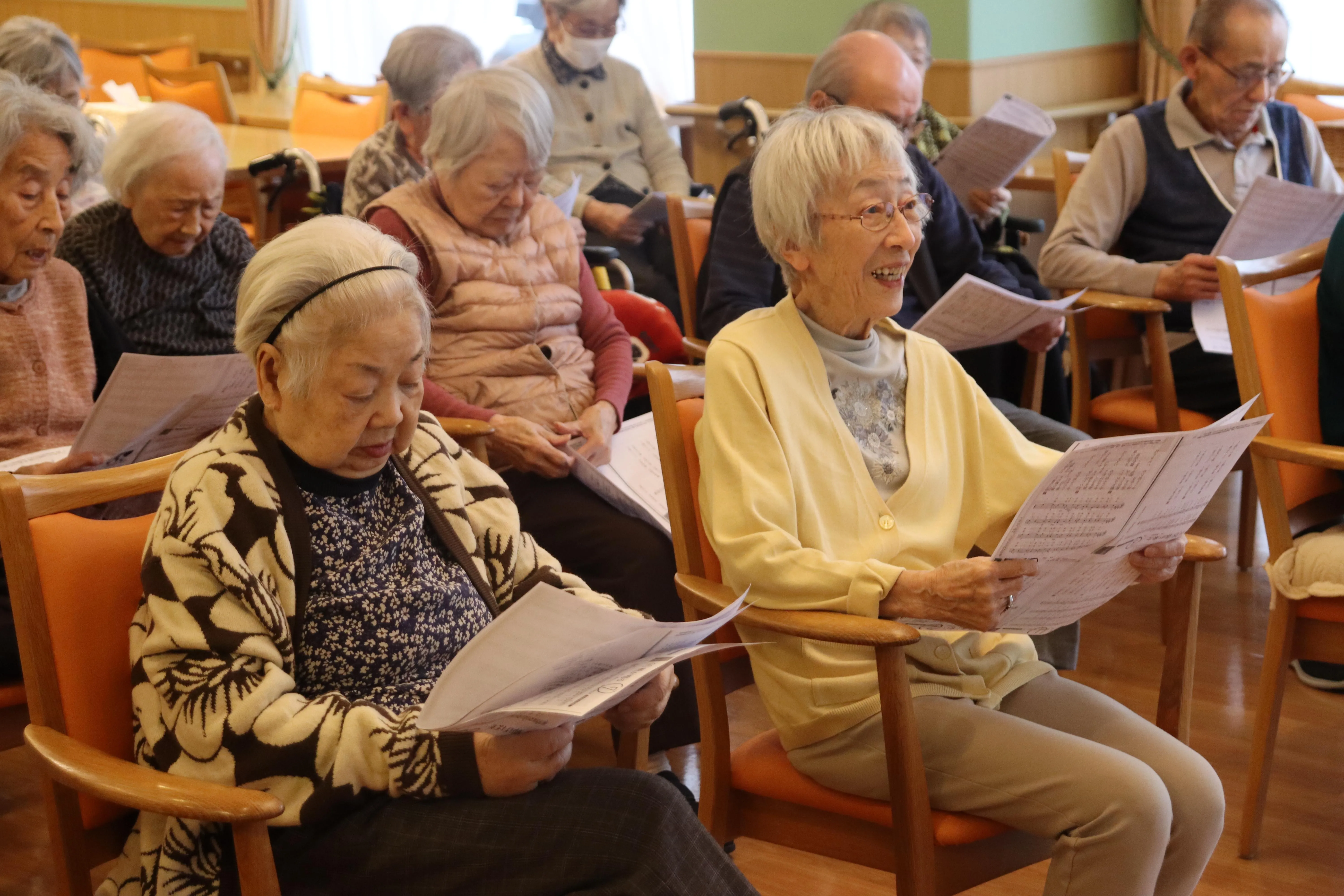歌声と笑顔が食堂いっぱいに広がり、心がいっぱい胸いっぱいの1時間でした。