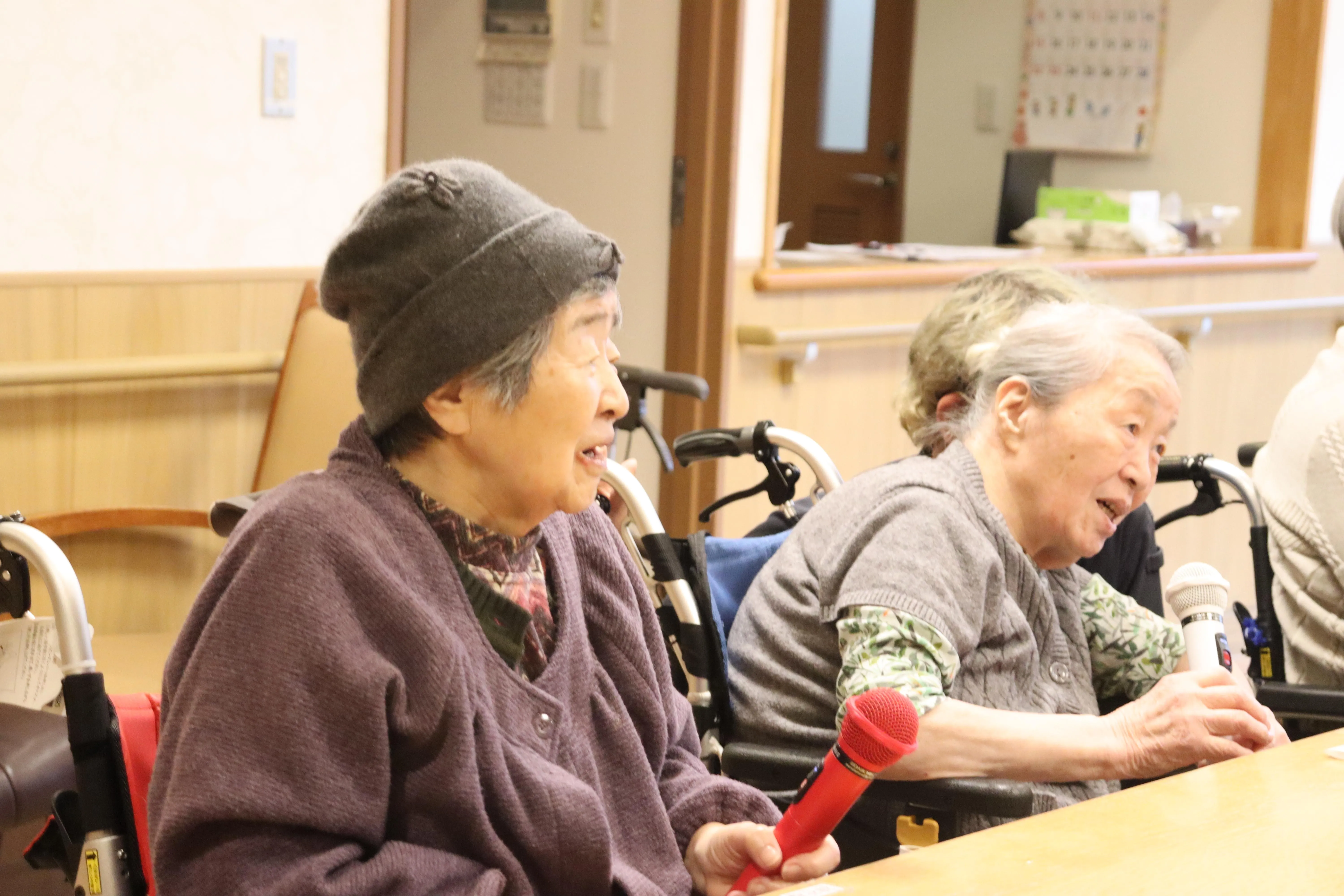 皆様が歌えるよう工夫し、歌が流れると皆様で口ずさんでいました。
