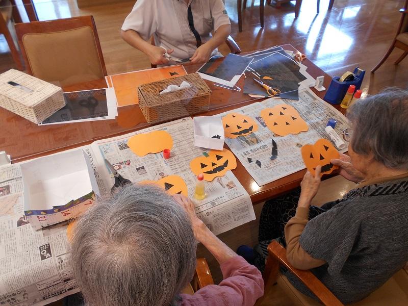 ハロウィンの壁飾りを作りました。世間話をしながらの作業に、皆さんとても楽しそうでした。完成したら、またご報告させていただきます。