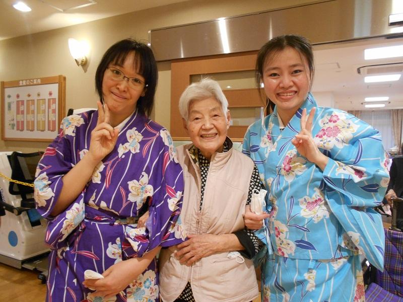 『秋のお茶会』を開催しました。お好きなお飲み物と、季節の和菓子を召し上がっていただきましたよ~召し上がった後は、和装の給仕と記念撮影です。「はい、チーズ!」