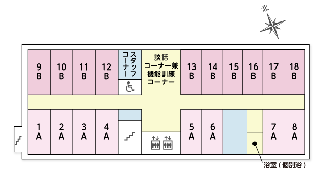 - ※適切な介護サービスをご提供するために一定期間を設け、医師の意見を聞いたうえで居室を変更させていただく場合があります。この場合ご本人及び、身元引受人の同意のうえで実施いたします。居室タイプにより居室料相当額が変更となる場合があります。