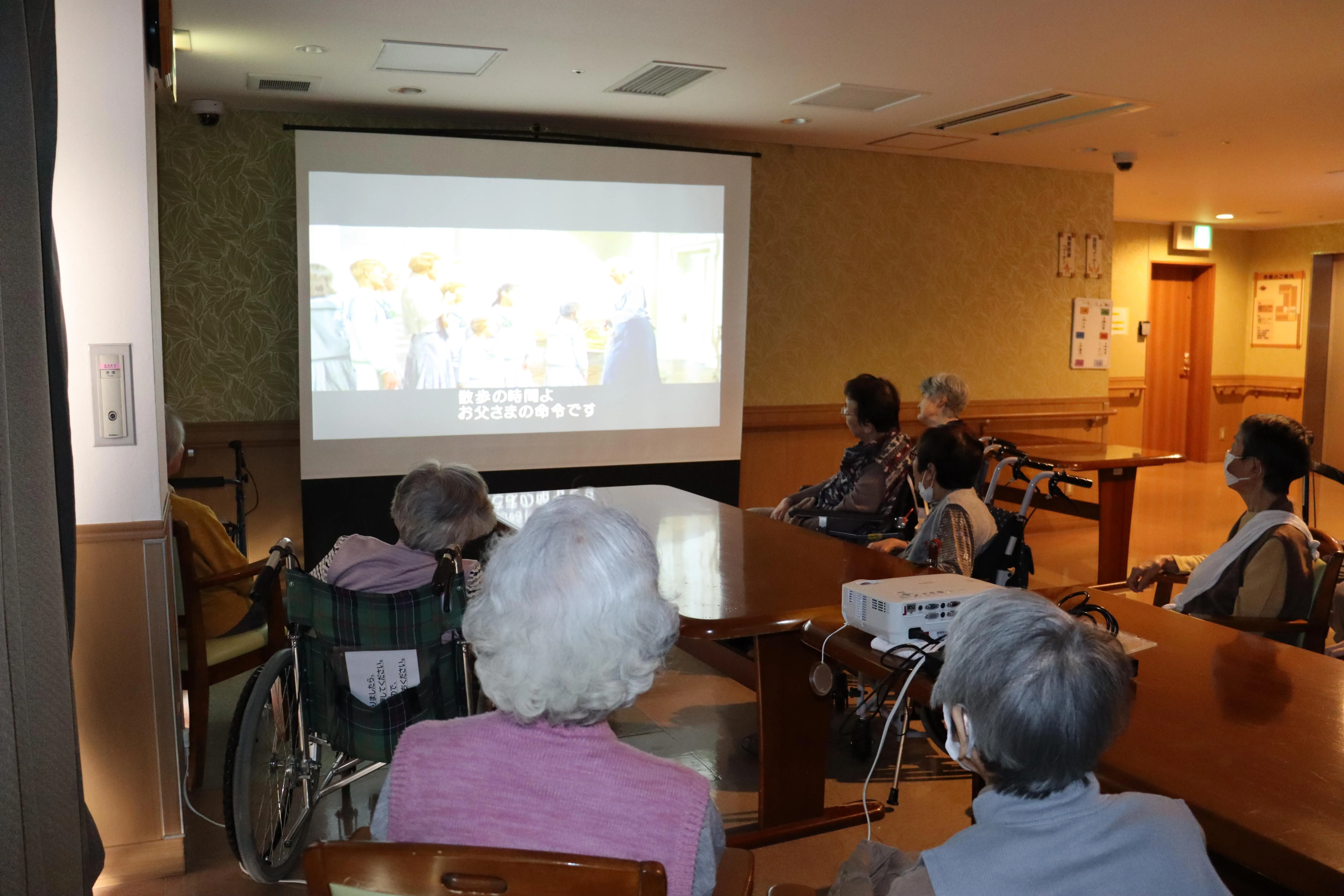本日は、映画観賞会レクリエーションでした。毎回お客様のリクエストにより、上映作品を決めています。本日の上映作品は女性のお客様から熱烈なリクエストがあった、サウンドオブミュージック。皆様集中し、楽しんで観賞されていました。