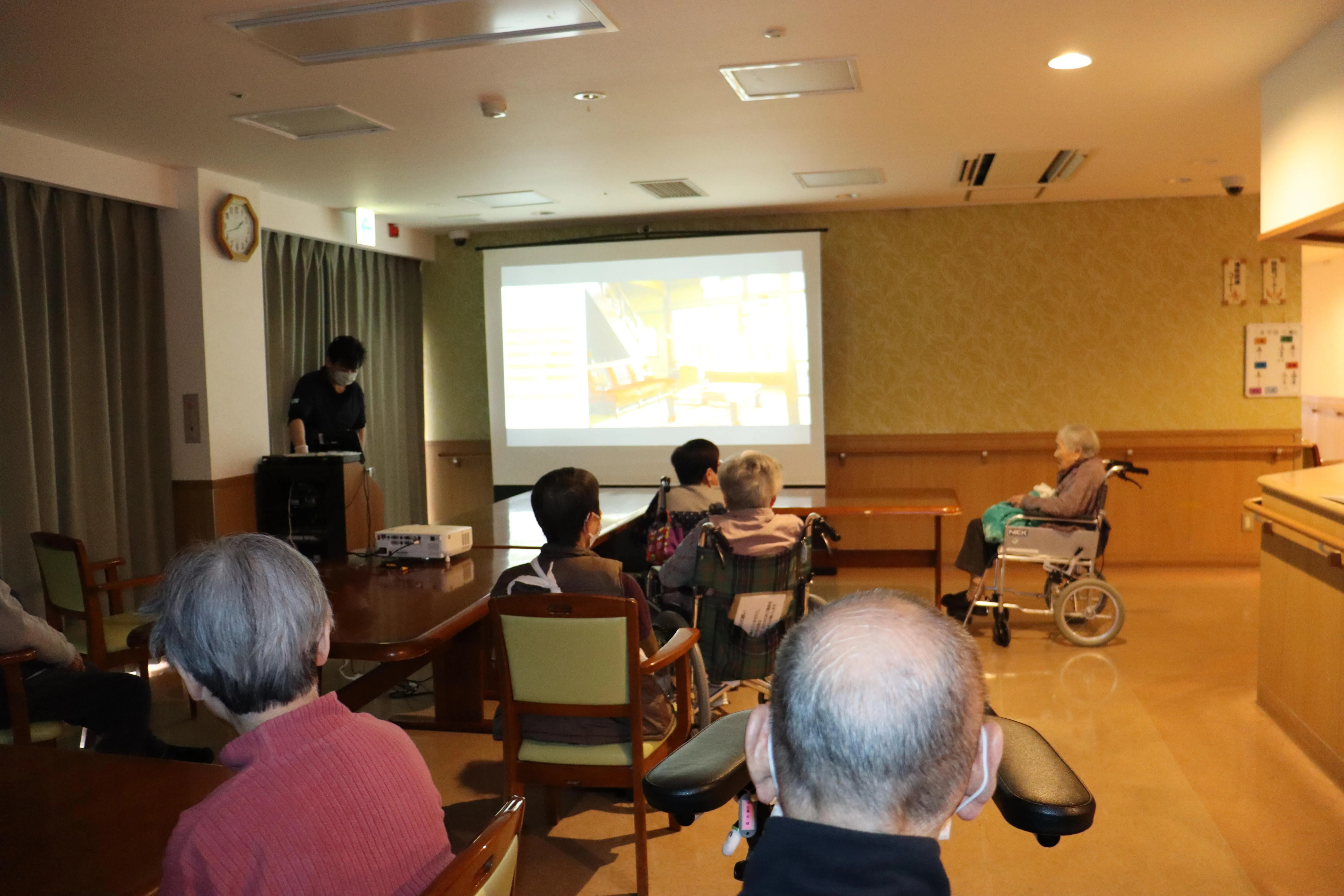 映画観賞会の日です。お客様からのリクエストをお聞きし上映作品を決めています。映画館にいる雰囲気で楽しんで頂いてます。