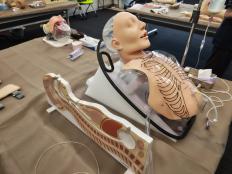当研修センターでは、訪問看護に必要な知識を実装するOFF-JT研修と、各種シミュレーターを使用した演習環境の中で実践的な判断力と対応力の両方を習得するOJT研修を提供しています。